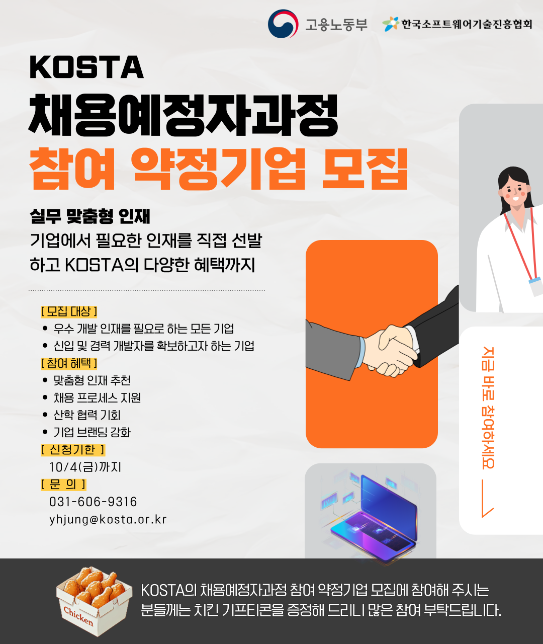 [SW기술협] KOSTA '채용예정자과정' 참여 약정기업 모집(신청기한: 10/4)